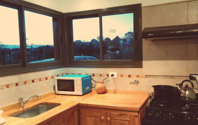 • Cocina totalmente equipada, incluyendo insumos para desayuno seco, vajilla, horno, heladera con freezer y microondas.
