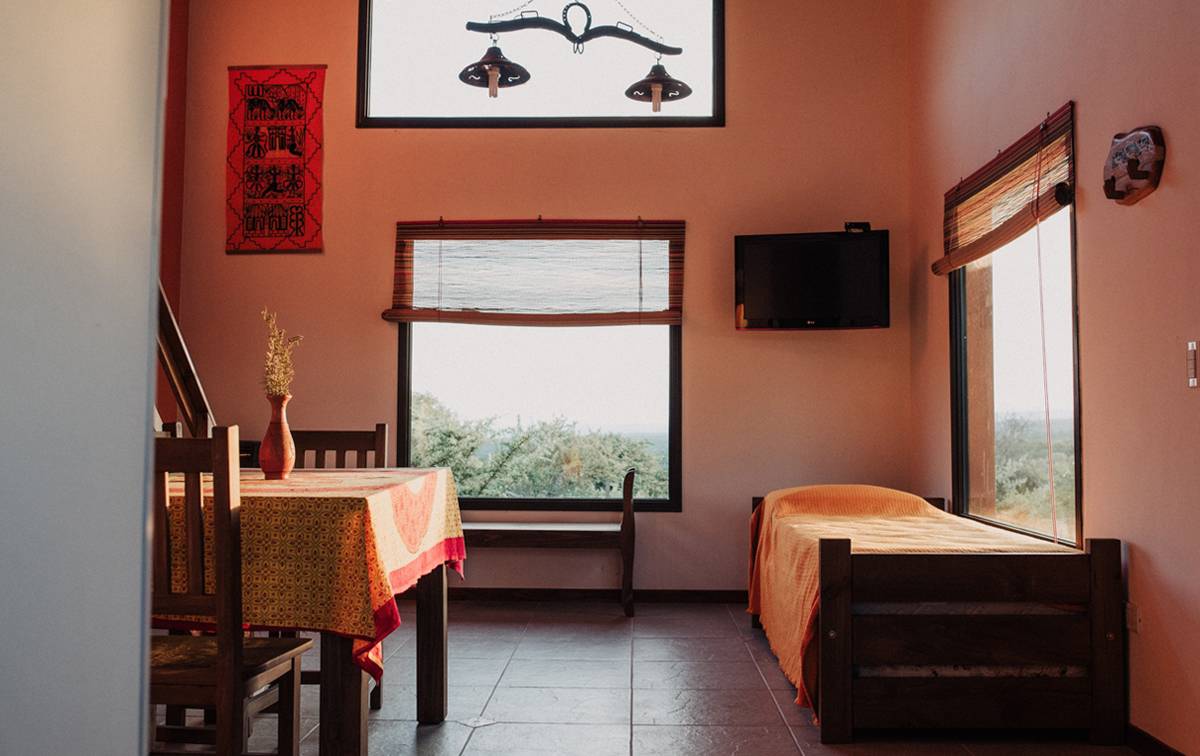 • En planta alta cuenta con 1 habitación abierta balconada hacia el comedor, con donde se encuentra una cama marinera para 2 huéspedes, aire acondicionado y balcón terraza con una increíble vista a las sierras.